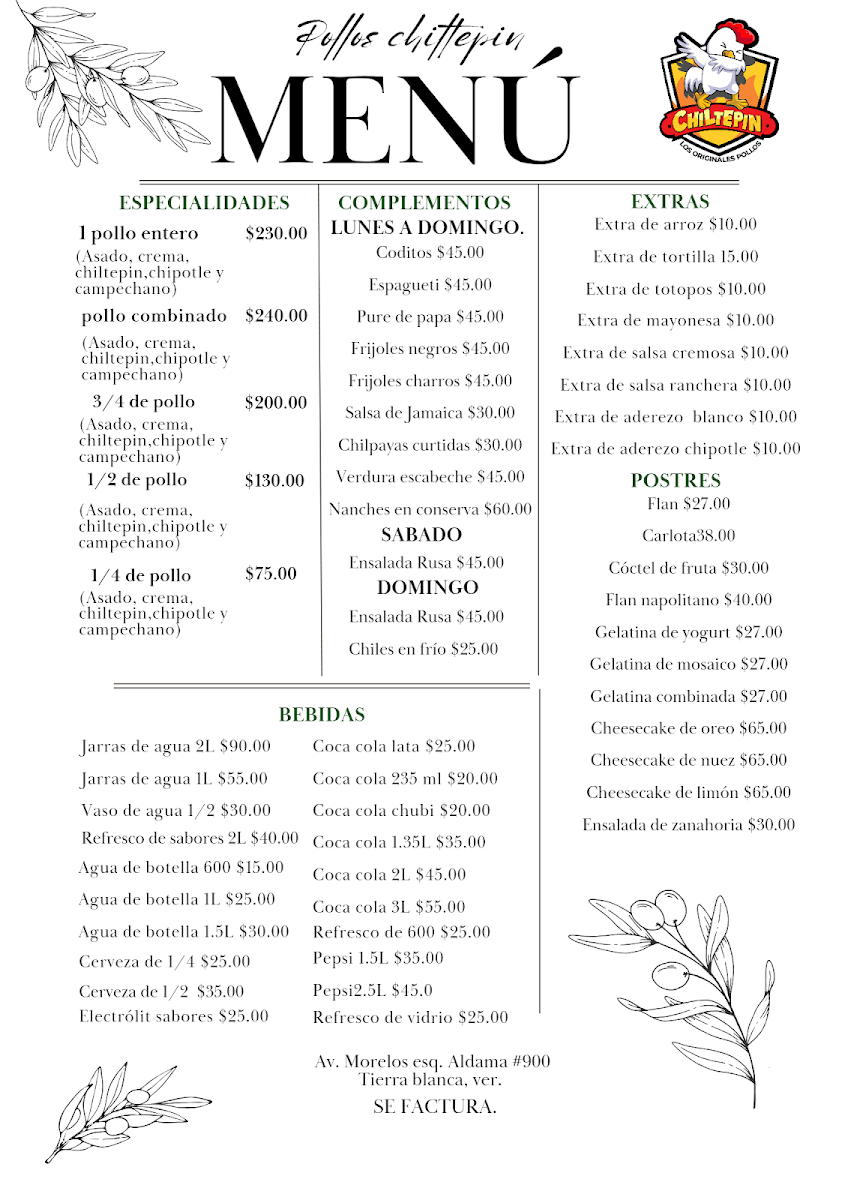 Pollos Chiltepín in Tierra Blanca, Veracruz, is a must-visit for chicken lovers seeking authentic, flavorful fast food. Known for its perfectly roasted, juicy chicken, this local gem combines quality ingredients with traditional recipes that delight the palate. The menu stands out with options like creamy and enchipotlado chicken, praised for their rich, bold taste that keeps customers coming back.